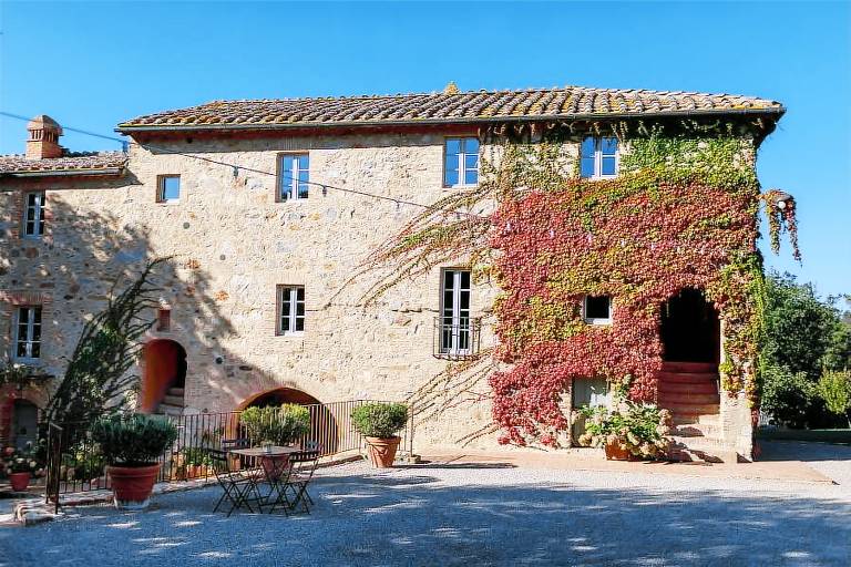 Podere Passignano is accessed via a scenic 2-km white road, offering a delightful approach to this little corner of paradise. The farmhouse has been exquisitely renovated, preserving the original features of traditional Tuscan homes, including exposed stone, wooden beams, and details that reflect the authenticity of the region.